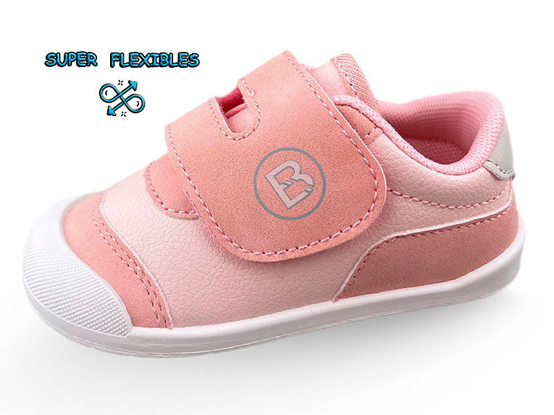 Horma cuadrada, piso de goma súper flexible con puntera para los dedos. Cierre ancho de velcro.