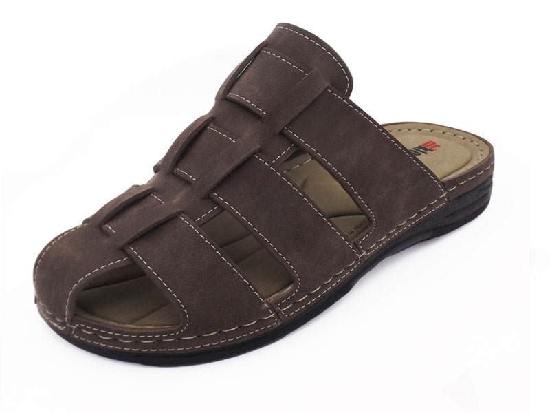 Sandalia para caballero estilo romana con diseño abierto fabricadas en material nobuk sintético con suela de goma ligera y razonablemente flexible.