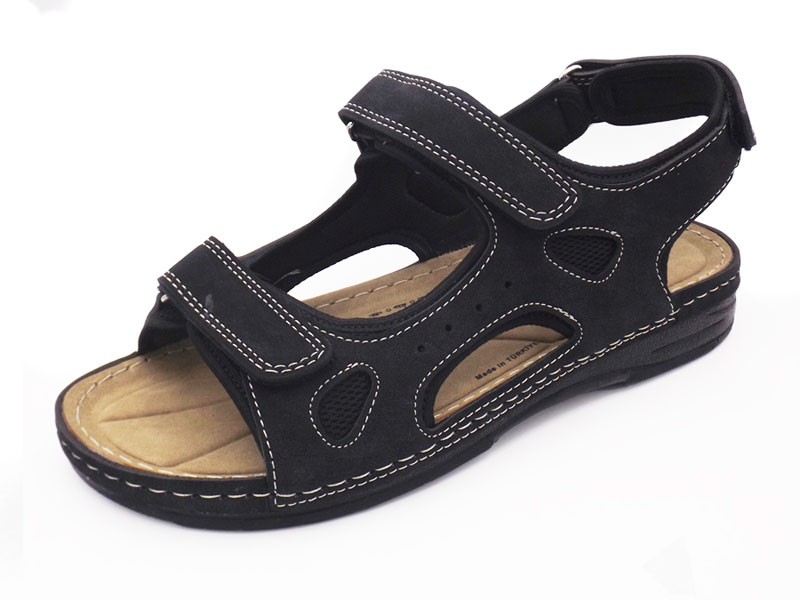 Sandalia para caballero con doble velcro en el empeine fabricadas en material nobuk sintético con suela de goma ligera y razonablemente flexible.