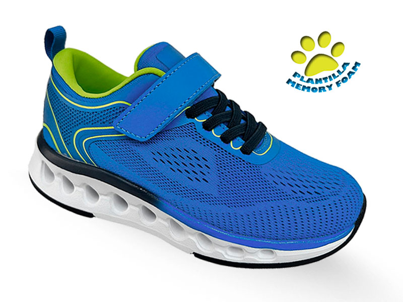 Zapatillas deportivas infantiles fabricadas en tejido de nylon tanto en interior como en exterior. Plantilla extraíble de memory foam y piso de goma con cámara ultra ligero efecto ‘Cuishon’.