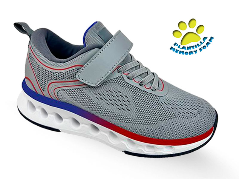 Zapatillas deportivas infantiles fabricadas en tejido de nylon tanto en interior como en exterior. Plantilla extraíble de memory foam y piso de goma con cámara ultra ligero efecto ‘Cuishon’.