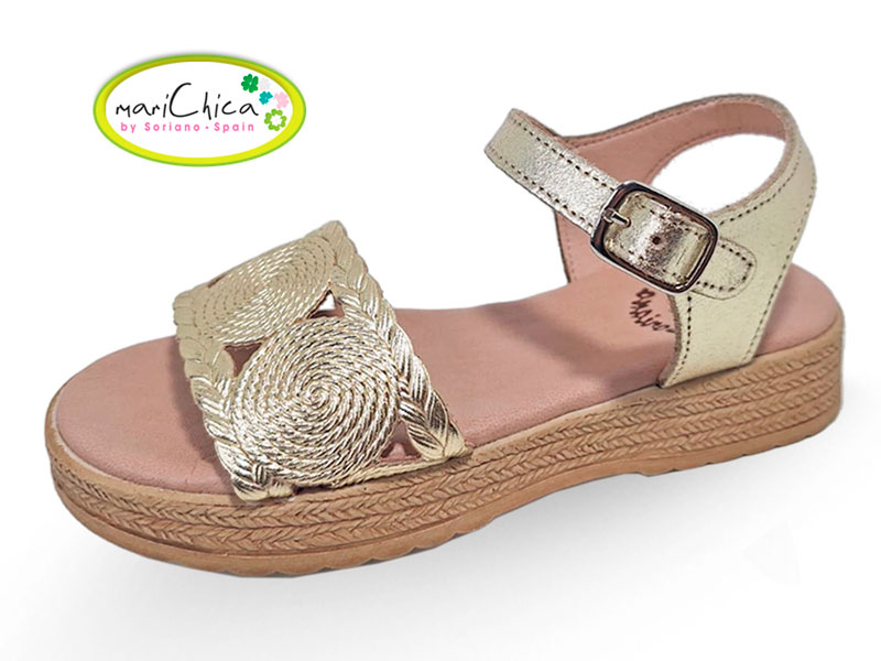Sandalia infantil con diseño de círculos griegos fabricada íntegramente en piel premium. Con plantilla efecto gel que amortigua la pisada y ofrece el máximo confort.