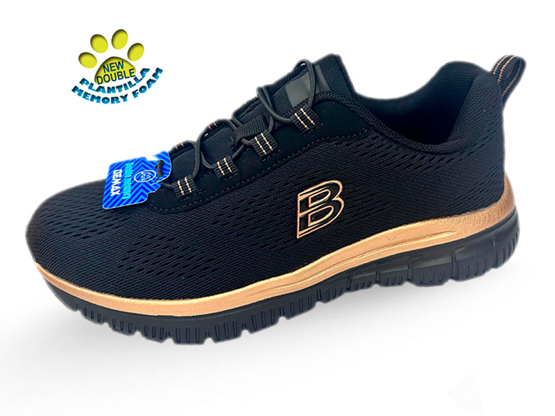 7-2302 G Negro/Oro Zapatilla con elásticos