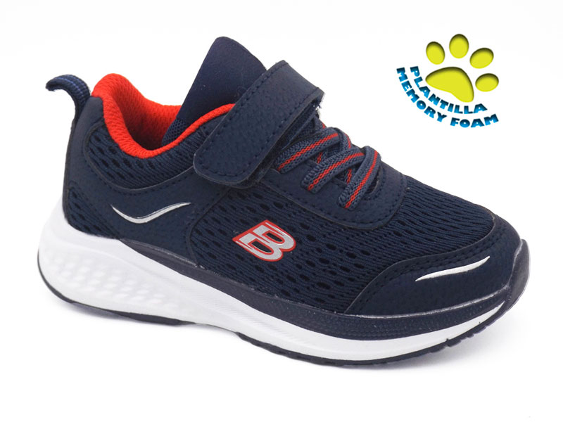 Zapatilla deportiva infantil fabricada en nylon transpirable en interior y exterior con plantilla extraíble de memory foam que amortigua la pisada.