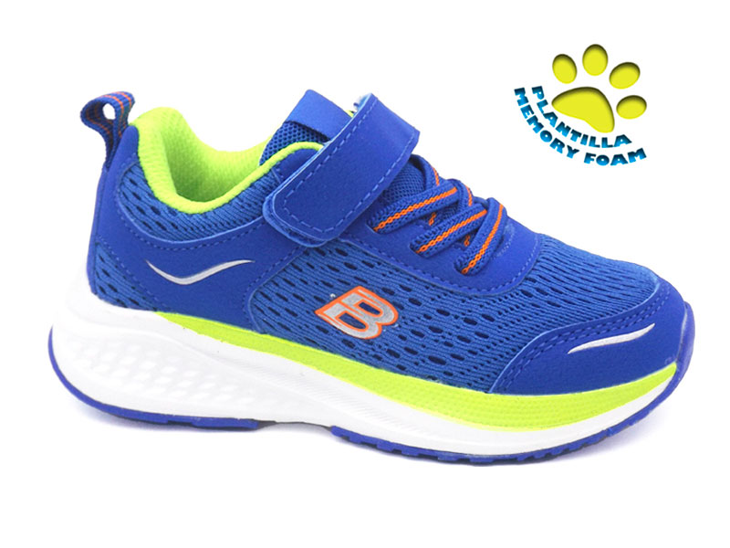 Zapatilla deportiva infantil fabricada en nylon transpirable en interior y exterior con plantilla extraíble de memory foam que amortigua la pisada.