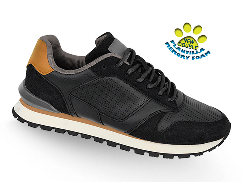 Forro textil y plantilla extraíble de doble memory foam. Cierre de cordones ajustable y suela de goma ligera antideslizante.