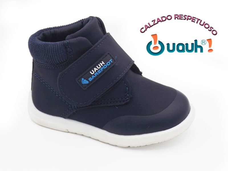 Botita infantil barefoot fabricada en material sintético en exterior y pieza de refuerzo en la puntera.